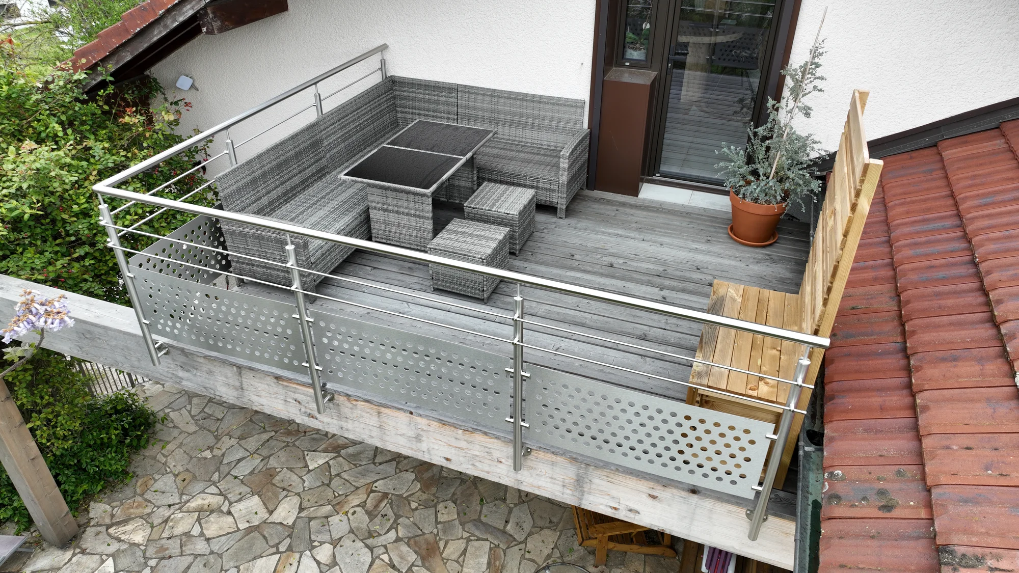 Pour une terrasse surélevée ou un balcon, la norme impose (consultez aussi notre guide dédié sur le garde-corps terrasse inox) :